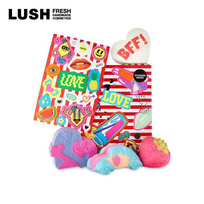 限定バスボムとバブルバーを合わせており、ポップなオリジナルステッカーも付いています。